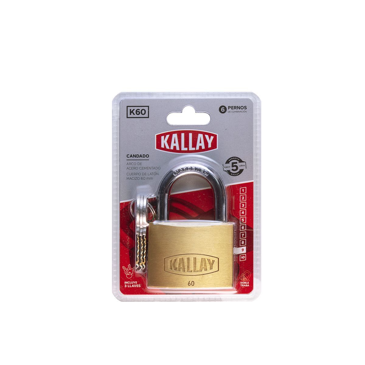 Candado Doble Traba Llave fresada KALLAY 60 mm bronce Blister